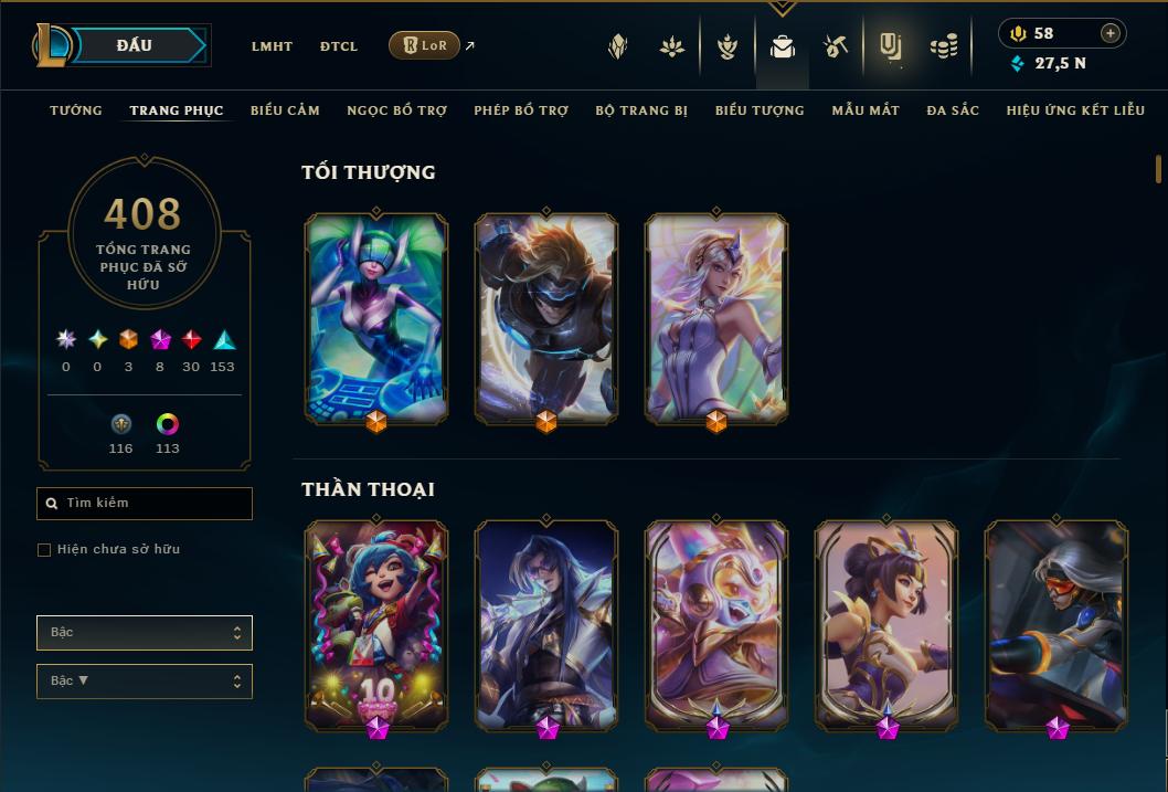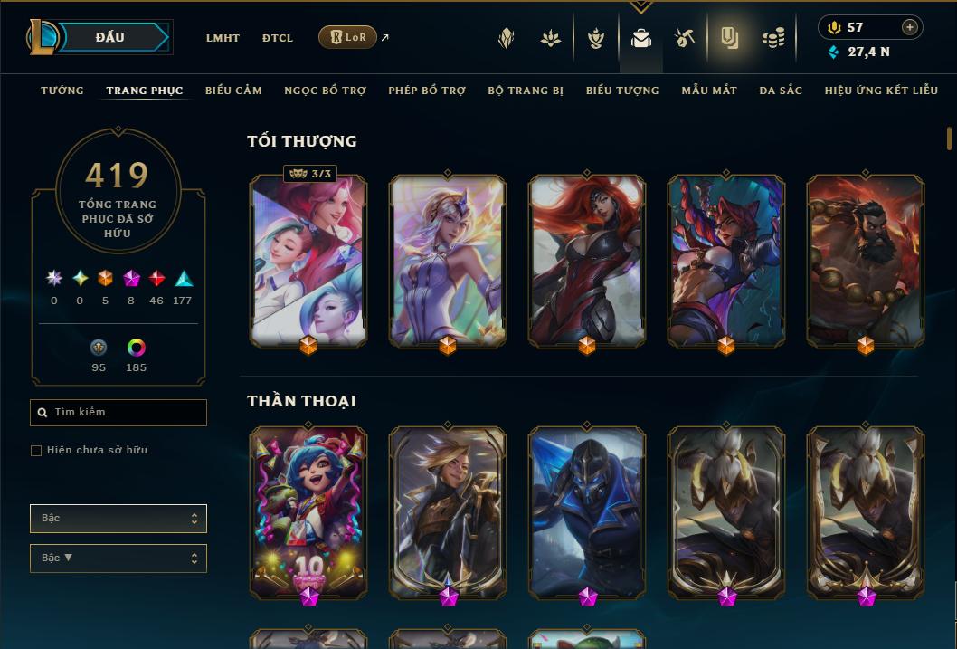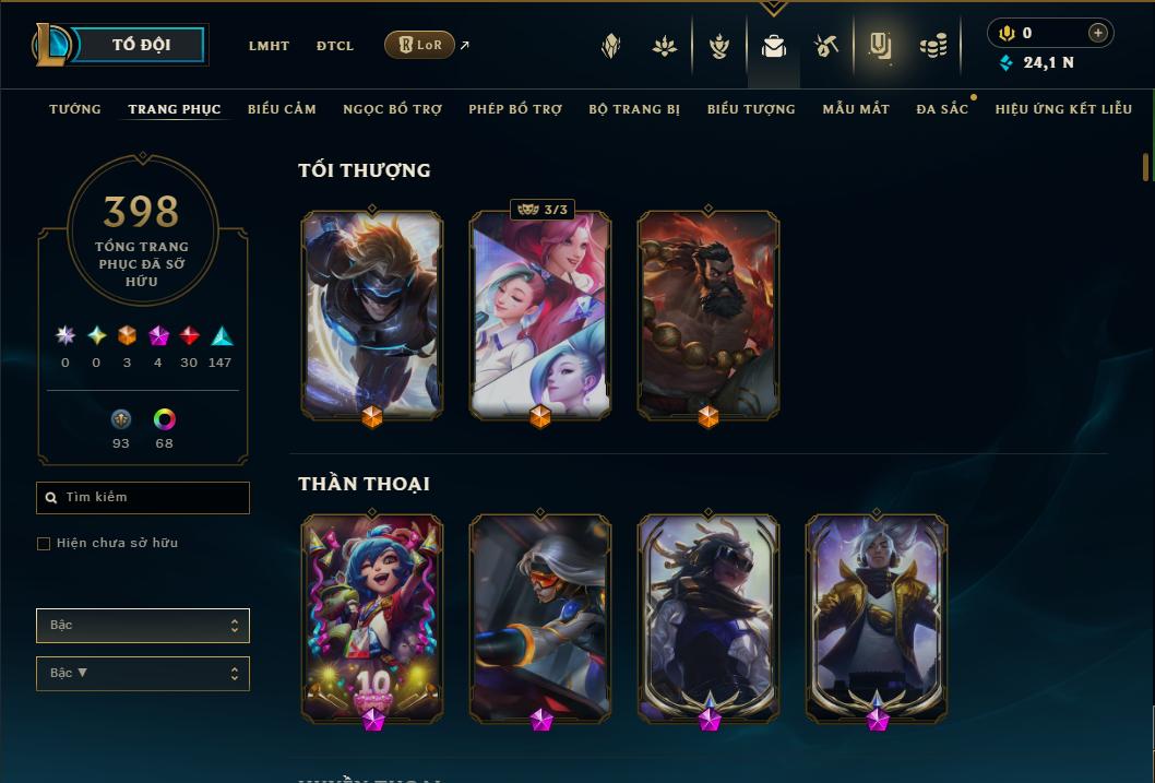 SETT SONG HỒN - SÂN CAO ỐC KIM LONG - 400SKIN LMHT NGON